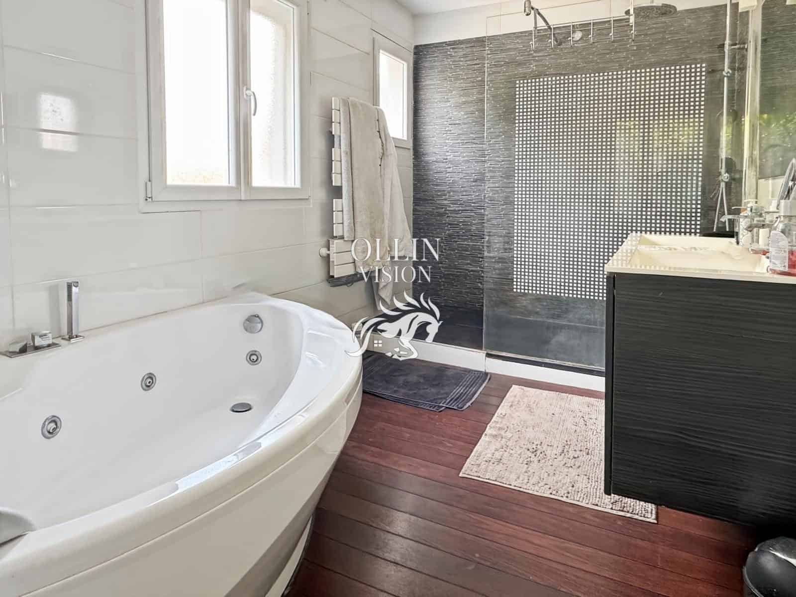 La master suite se distingue par ses beaux volumes et son confort : grand dressing, salle de bains complète avec baignoire, douche à l’italienne, et WC indépendant. Vous trouverez également un WC invités et un cellier/buanderie.