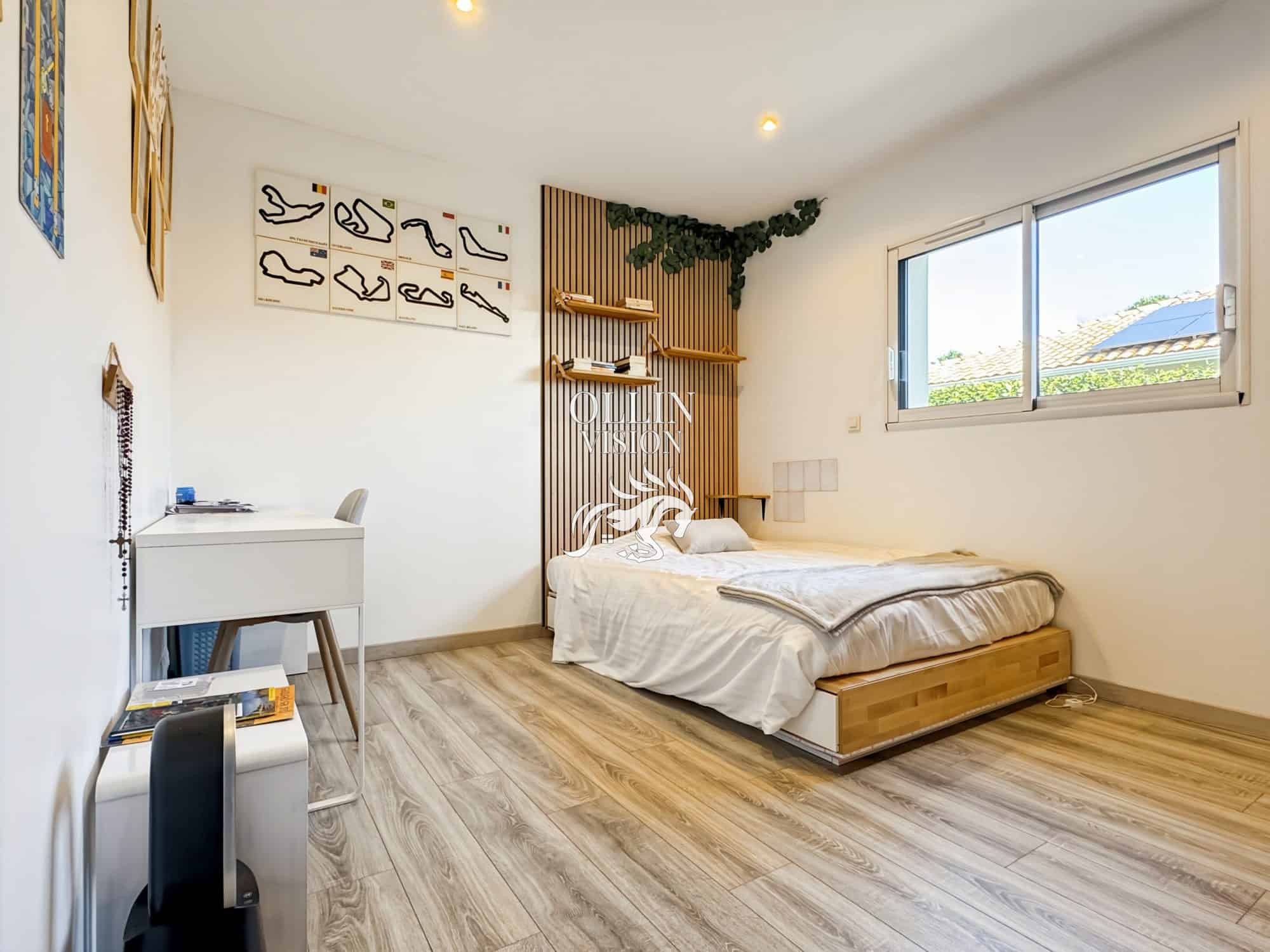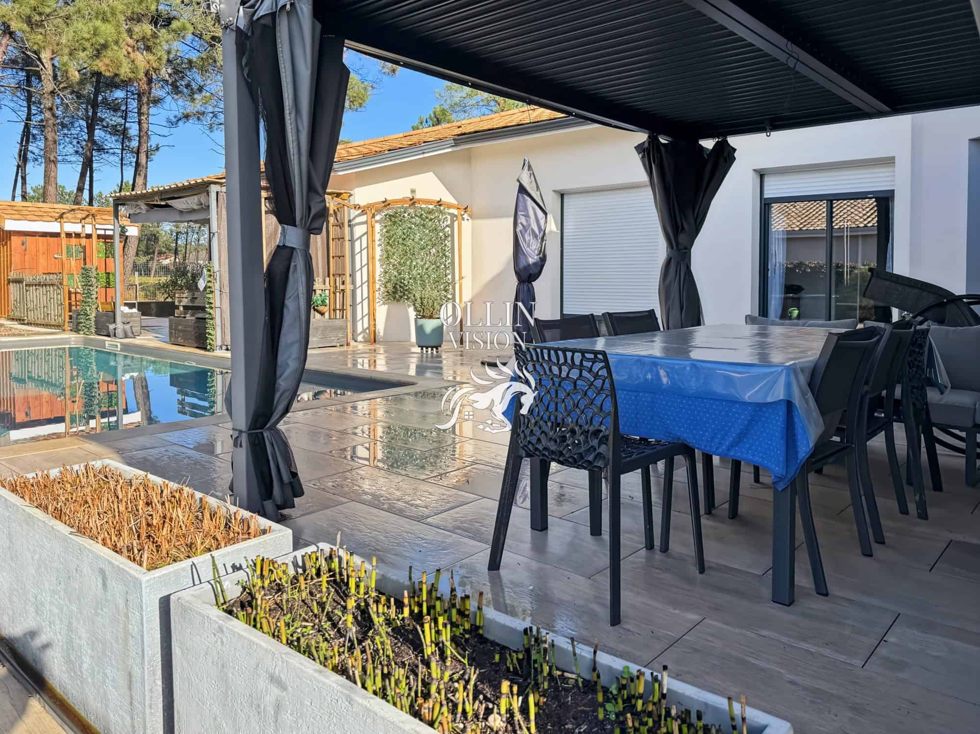 Découvrez cette magnifique villa de grand standing, construite en 2020 et rafraichie en 2023, offrant un espace de vie spacieux et élégant de 168 m². Située sur un terrain de 850 m², cette propriété de plain-pied vous propose un séjour lumineux de 60 m², baigné de lumière naturelle grâce aux grandes ouvertures. La cuisine américaine, aménagée et équipée, est un rêve pour les amateurs de cuisine. Avec 4 chambres, une salle de bains et une salle d’eau, cette villa offre tout le confort nécessaire pour une vie familiale harmonieuse.Profitez de la terrasse et du jardin pour des moments de détente en plein air. La piscine de 4×8 m est l’endroit idéal pour se rafraîchir et se détendre. La villa dispose également de 2 places de stationnement extérieures, ainsi qu’un double garage isolé, chauffé et carrelé.